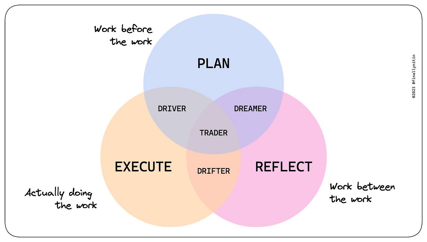 1. Driver — You plan & execute. You are obsessed with results, win rates, profits made per trade. You have no time or energy left for journaling or attempting any conscious improvement in your effectiveness.
