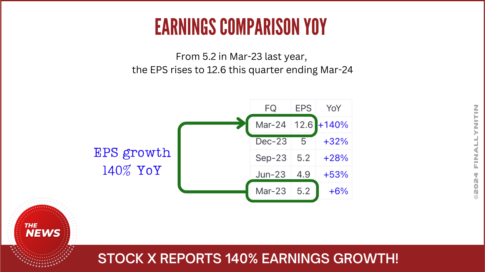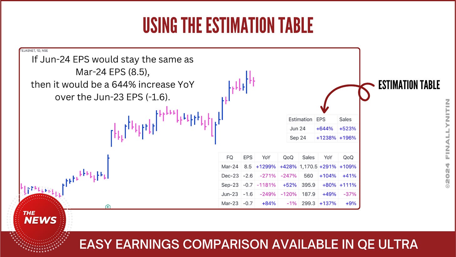 Look at the current quarter’s EPS: If the EPS of the current quarter (March 2024) are much higher than what the company earned 3 quarters back (June 2023) last year, it’s a good sign. Our assumption is that the company will at least post the same EPS in the upcoming June 2024 quarter.