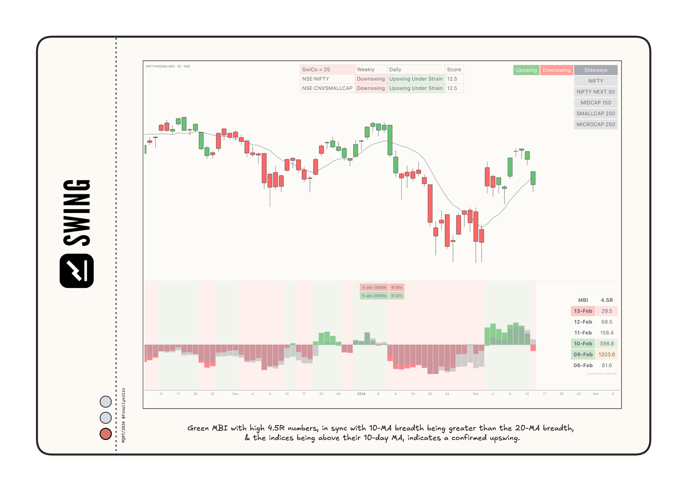 The week started with a strong gap-up, and the MBI turned green, but thereafter each day had progressively lower 4.5R numbers, with the MBI eventually closing the week in the red.