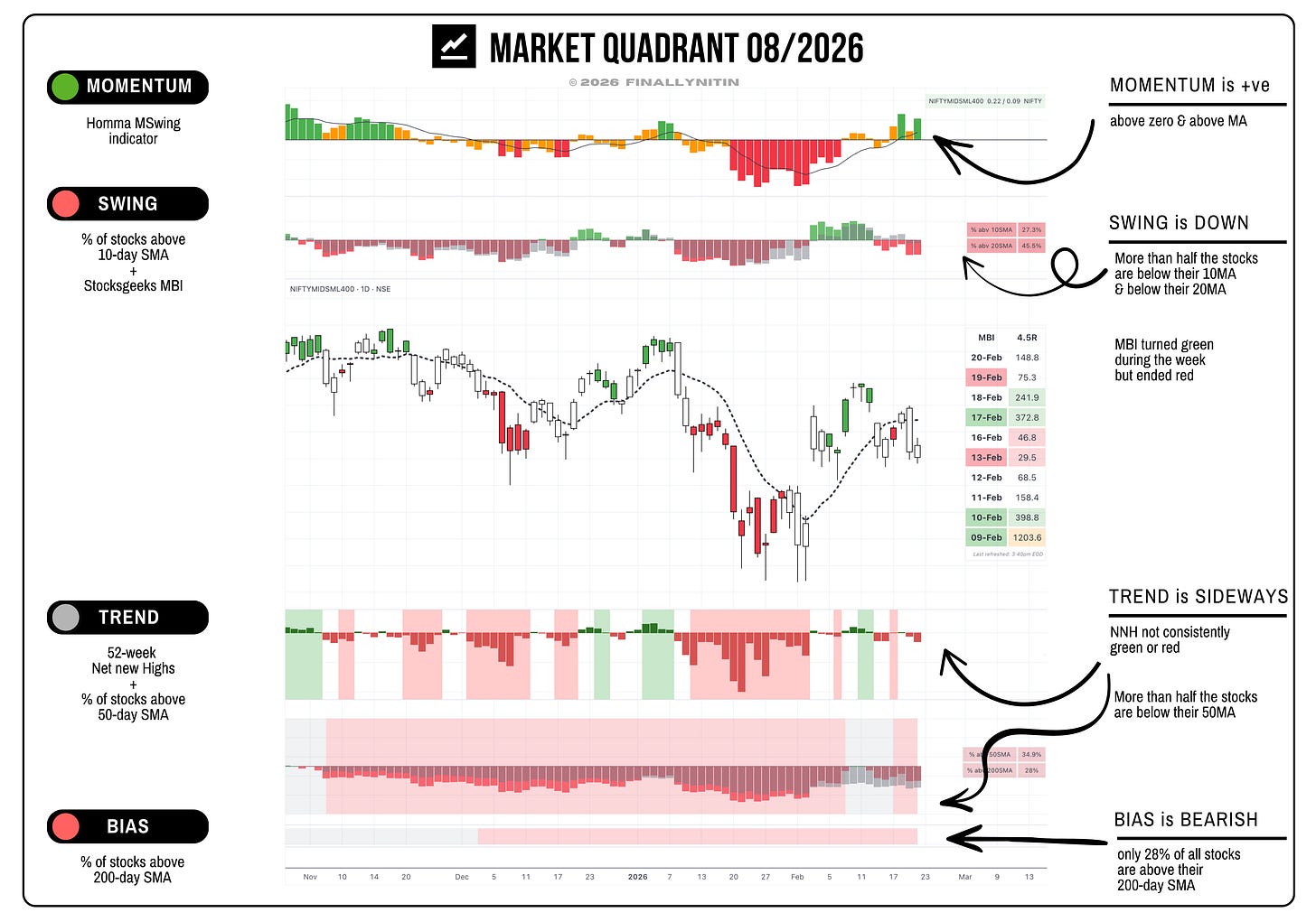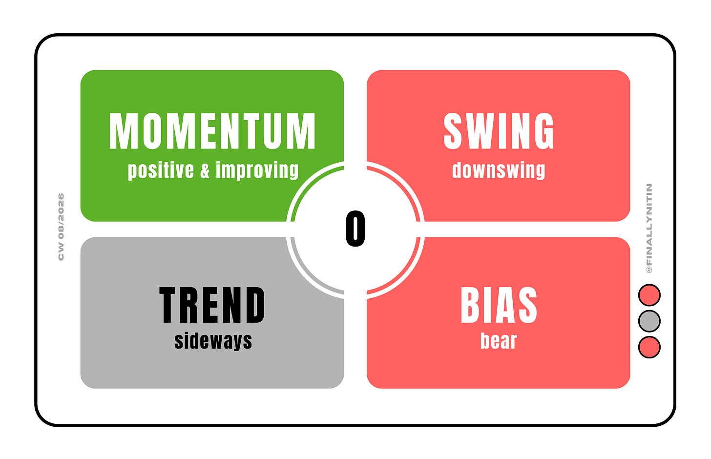 The week started in the red, followed by a mild upmove that led to the MBI turning green, but thereafter the action was weak, and the MBI eventually closed the week in the red.