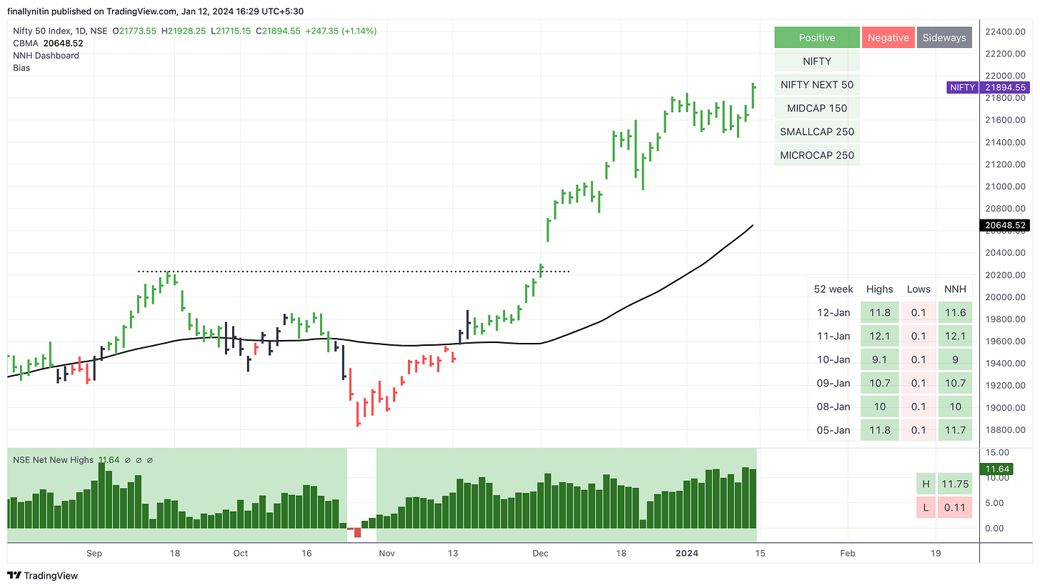 ⦿ Net New Highs have stayed positive for past 3 consecutive days.