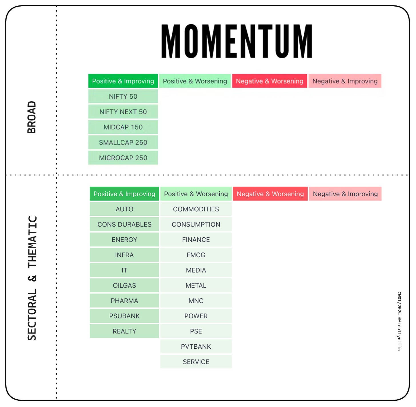 ⦿ Finance, FMCG, Media, & Power are some indices with positive but worsening momentum.