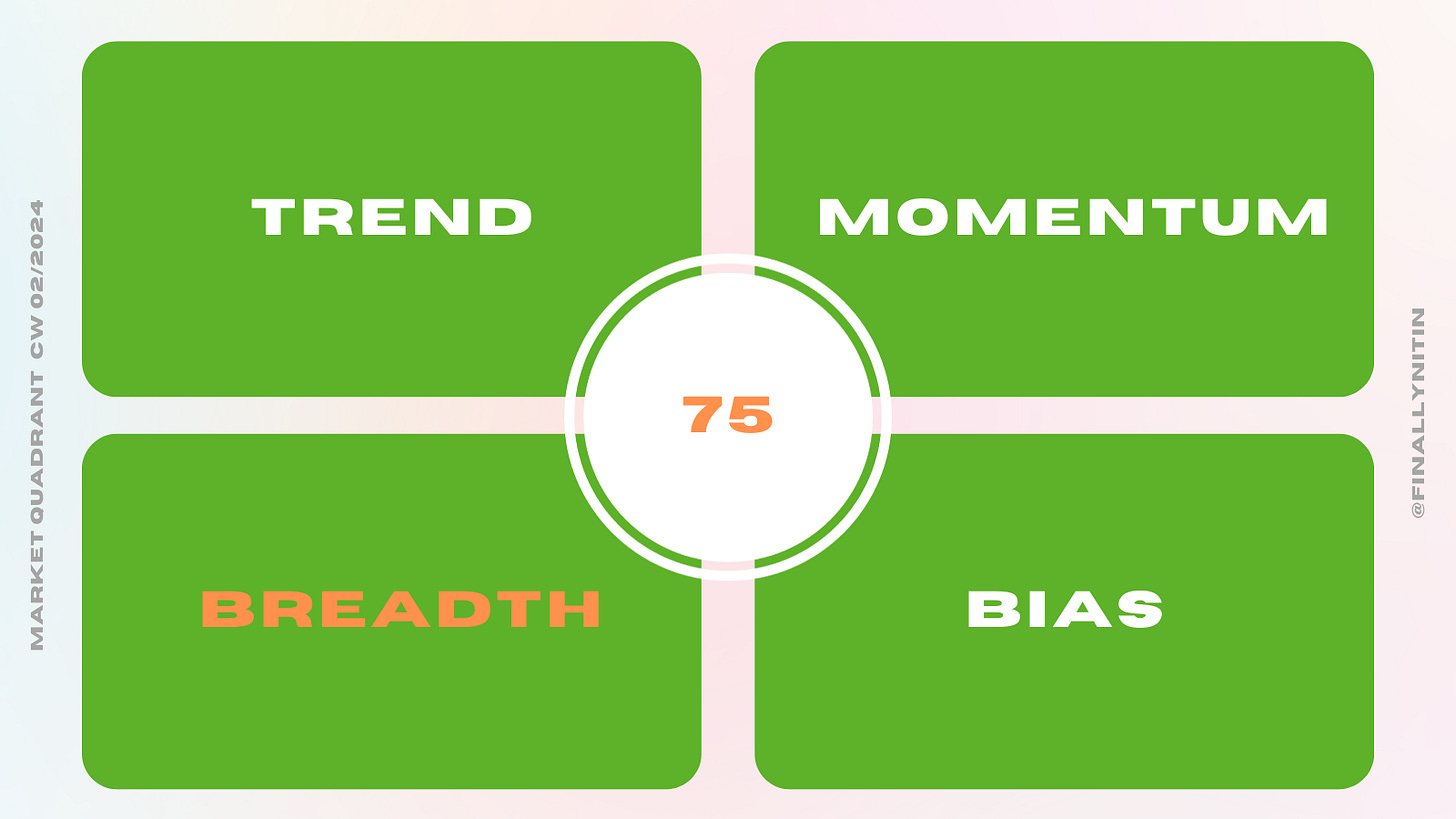 ⦿ After dipping down mid-week, Market breadth volume has been inching up, & now stands at 0.69, which indicates decent participation.