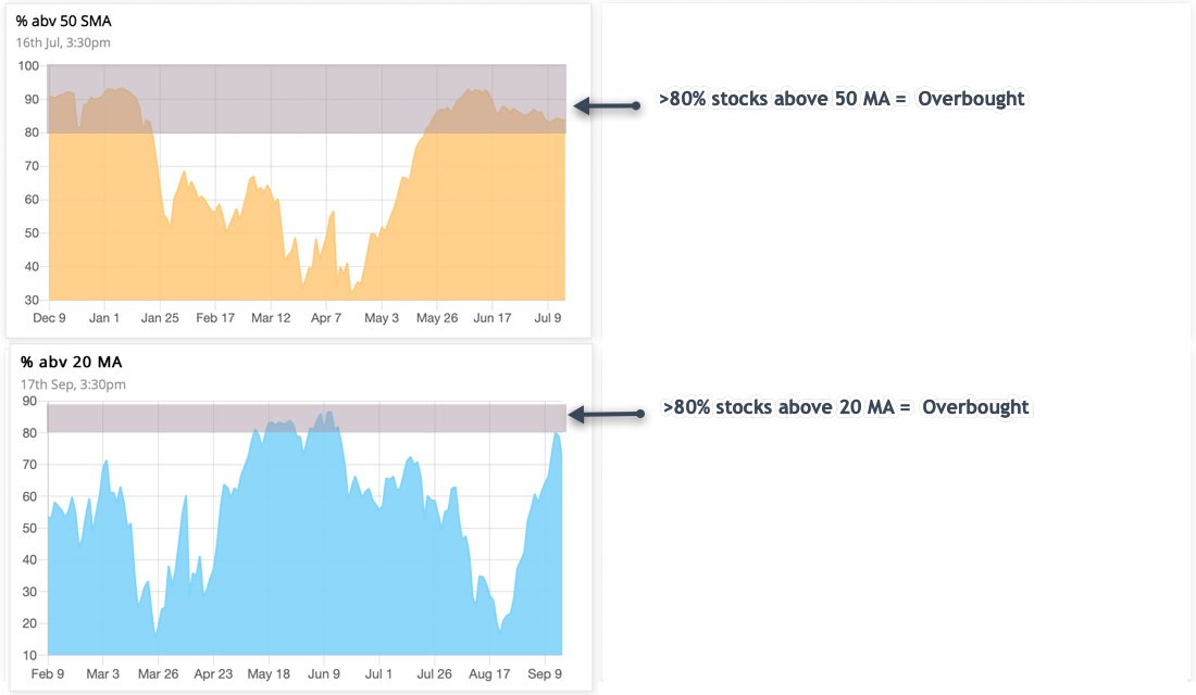 When the market breadth is extended/overbought, we need not rush to exit all our holdings & sit out in cash. We instead need to: